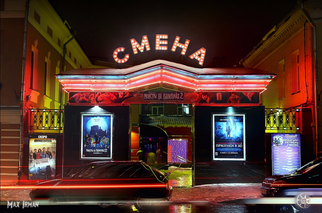 Настоящая находка для ценителей киноискусства! «Смена» — это не просто кинотеатр, а место силы для всех, кто устал от голливудского мейнстрима. Уютный камерный зал, интеллигентная публика и блестящий репертуар: авторское кино, фестивальные хиты и умное документальное кино. Здесь можно не только посмотреть редкий фильм, но и обсудить его после в дружеской атмосфере. Мой любимый кинотеатр в городе! Спасибо за вашу работу.