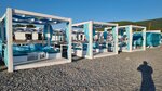 Пляж достаточно тесный, но все есть. Цены на детские развлечения не гуманные. В общем чисто. Заход в воду достаточно крутой, с мелкими детьми не очень удобно. Камни не крупные, волунов в воде нет. Есть катамараны на прокат.