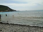 Пляж не плохой, галечный, есть шезлонги, навесы, можно покататься на банане, на катере. Людей в разгар сезона конечно много, но можно пройти дальше к скале, там нет шезлонгов, но и отдыхающих на много меньше. Рекомендую приобрести резиновые пляжные туфли, заход в море в районе скалы не слишком комфортный. Зато прозрачная вода, дно видно на глубину 2-3 метров, можно поплавать с маской и посмотреть на рыбок, их там много.