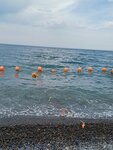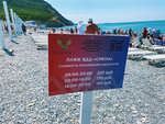 Пляж как пляж, ничего особенного,отделен забором от остальной части пляжа, пройти можно у самого моря. Пляж галечный,без крупных камней. Глубина наступает быстро, метра 3-4 от берега и уже по шею. Кабинки есть, душа и туалета нет, навесов нет. Кафе тоже нет. Во время купания детей из лагеря находиться на пляже нельзя, но можно пройти дальше к скале, там купаться не возбраняется. Но вообще нам только один раз за 2 недели сделал замечание охранник, что это территория лагеря и нам сюда идти нельзя, разве что можем пройти к скалам. Главное, что стоит учитывать, находясь на пляже- дети могут кидать камни в отдыхающих. С нами такое случилось, плыли с дочкой вдоль берега ЗА ЛИНИЕЙ буйков, огораживающих зону купания лагеря, рядом с нами дважды раздались всплески, будто что то крупное ударилось о воду. Я сначала подумала, что дельфин приплыл, мы быстро вернулись на берег и вот там я потом увидела, что пацан лет 12 кидает немаленькие камешки в море, метя в отдыхающих людей. Позже прочитала в местных пабликах, что это тренер/ вожатый науськивает детей на подобные действия, типа война за территорию и выпроваживает непрошеных гостей. При этом на пляже есть охранники, которые собственно и должны этим заниматься, но они нормальные люди, просто следят, чтобы детям не мешали. Членовредительством не занимаются). В общем, будьте осторожны, находясь на пляже во время нахождения там детей из лагеря, они там бывают с утра и до 12, в промежутке с 12 до 14 никого нет.