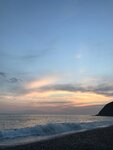 Самое нереальное Чёрное море, что мы видели!!! Вода прохладная и прозрачная даже на глубине! Минусы - прохладная вода и не очень удобная галька при входе, но!!! сама вода такая потрясающая, что все минусы просто исчезают)) а какие закаты😍😍😍 вокруг горы, покрытые хвоей.... этот пляж просто восторг!!! п.с. есть переодевалки, платный туалет и душ (чистые), кафе, мороженое и всё остальное)