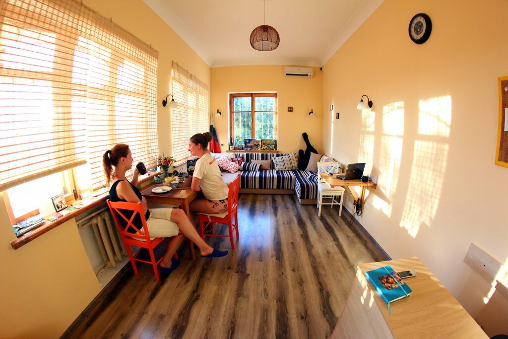 Офигенский хостел с офигенским местоположением и офигенскими админами. Поскольку центр: 1. отсюда можно доехать, куда угодно, без трудностей с транспортом; 2. рядом куча кафешек, ресторанов, магазинов, в т.ч. набережная. Иногда проводятся атмосферные вечера под гитару или настольные игры. И гости, и не гости – все очень доброжелательны, можно без проблем завести новые знакомства. Из небольших минусов: нужно оплачивать либо наличкой, либо переводом по номеру карты (по СБП не получится). Но в целом проблема решаема и теряется на фоне великолепных условий. Койка со шторками со всех трех сторон, мягкой кроваткой, индивидуальной розеткой и светильником. Также выдается ключик от своего индивидуального шкафчика, где можно хранить ценные вещи. Остальные вещи можно хранить в полке-отделении под кроватью. На кухне есть все необходимое: посуда, бытовая техника (микроволновка, холодильник, плита, чайник), общие бесплатные специи и приправы. Свои продукты можно хранить в плетёной корзинке и в холодильнике. Также можно пользоваться утюгом, гладильной доской. Админы убираются каждый день, внимательно следят за чистотой, а грязнуль ругают (шучу). Из платных услуг: стирка + сушка 150 рублей. В феврале пребывание здесь особенно приятно: людей немного, нет ощущения курортной суеты. Чисто. Уютно. Красиво. Удобно. Тепло