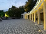 Расположен в самом живописном месте Курортного парка - на площади в центре которой находиться Смирновский фонтан, точки общепита, смотровая площадка с видом на Каскадную лестницу и другие архитектурные артефакты. В обеих крыльях полукруглой галереи расположены павильоны где можно купить сувениры и различные питейники для воды. Однако они работают по расписанию и мое пребывание в парке как раз совпало с перерывом и внутрь я не попал.