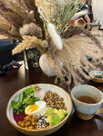 Нитро кофе и интерьер понравился, официант был очень приветливый. В боуле неспелый твердый авокадо, в остальном боул вкусный. Живая музыка казалась абсолютно ни к месту: пианист без эмоций, звук громкий,как будто мы в концертном зале. Мы пришли с друзьями и общаться было невозможно, официант нас не слышал, пришлось действительно напрягать и надрывать голос,чтобы сделать заказ даже, как за соседним креслом женщина читала книгу остаётся только гадать. В туалете была сломана задвижка, из-за чего поход в туалет - это квест на выживание - моя подруга еле выбралась.