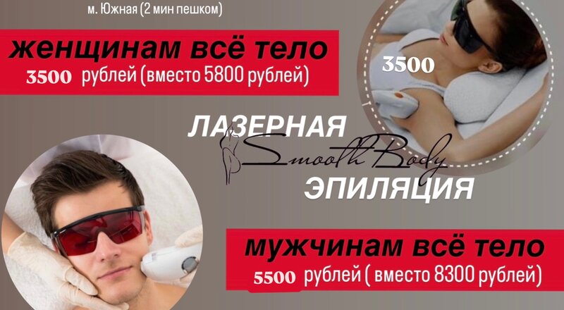 Лазерная эпиляция ВСЕГО за 1 рубль - при оплате 2х любых зон - 3тья зона за 1 рубль. Подробности уточняйте у мастера - https://t.me/smoothbodymsku М. ЮЖНАЯ, Варшавское шоссе, вл132/2.