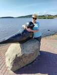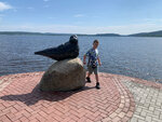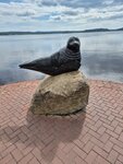 Красивое место , пристань , рядом обустроенная набережная , статуя нерпы