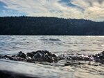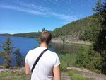Когда то на скалистом берегу стоял дом, сейчас остался один фундамент. Вид с бывшей террасы открывается потрясающий. После дороги вдоль озера стоит притормозить и посмотреть.