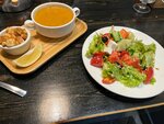 Ооочень все вкусно, прям язык проглотишь, особенно салат из обжаренных баклажанов. ( найти бы его рецепт). Шашлыки, супы и все остальные блюда, все объедение. И цены, по сравнению с другими кафе, недорогие. Обслуживали очень интересный парень и очень молодой пацан. Спасибо им огромное. Вернулась бы ещё с удовольствием.