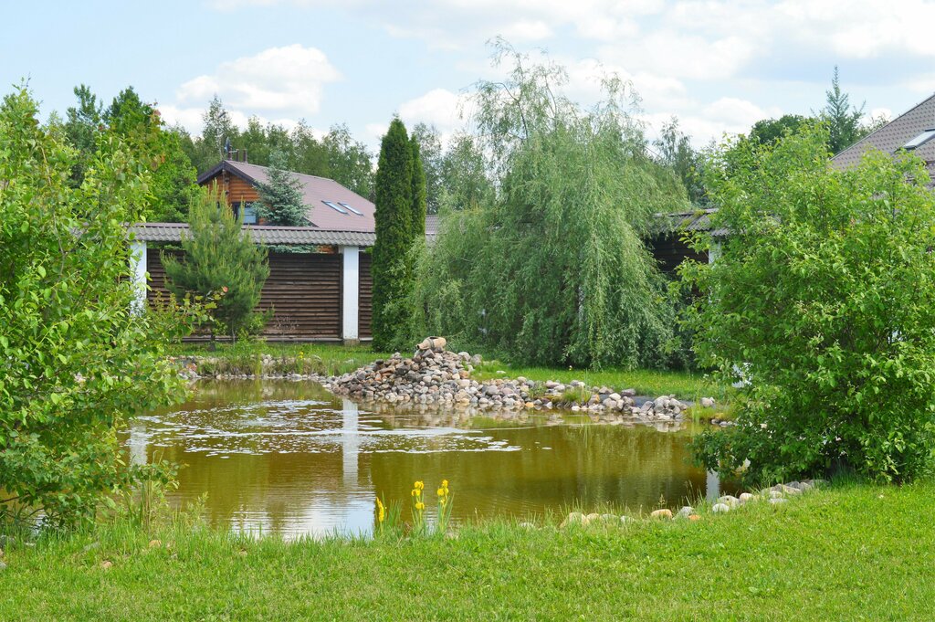 Тихон и очень спокойное место. В основном дачники, проживающих круглогодично не много. Дороги так себе. Сторож есть. Шлагбаум тоже. В пруду ловятся караси. Прямой выход в лес с грибами.