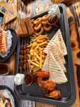 Были в данном заведении в будний день, пришли посидеть попить пива, поболтать, да персонал вежливый, обстановку собрали из всего что было на чердаке, интересно вспомнить что эти вещи когда то были в нашей жизни, повод норм, но вот пивная доска оставляет желать лучшего, луковые кольца горчили, тортилья-если вы не едите острую еду, очень острая, подача на пластиковом подносе, как в столовке, салат цезарь на троечку, не совсем свежие листья салата с сухими краями, что касается туалета имелся неприятный запах, одна раковина не работала и не совсем там чисто хотя мы были почти сразу после открытия.