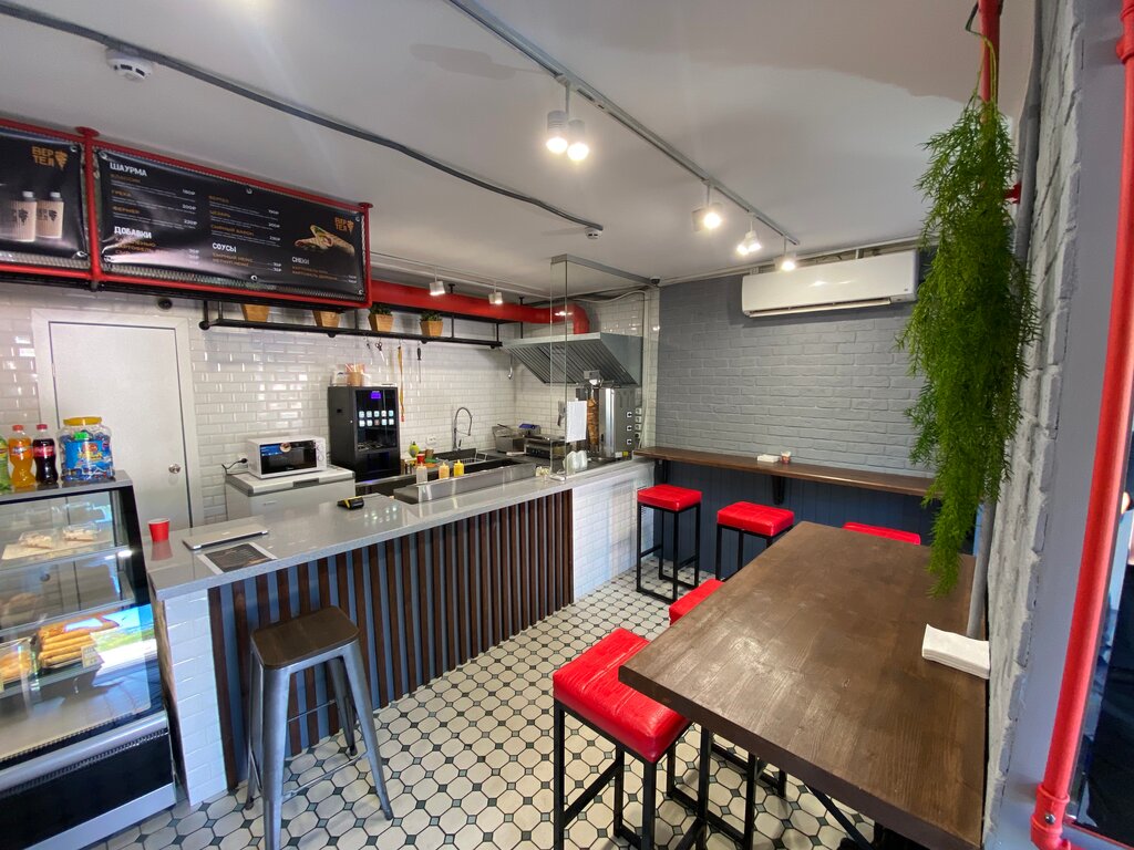 Часто сюда ходим. Тут всегда можно попросить, чтобы приготовили индивидуально, повар добавит или уберет всё, что попросим сделает и решит всё на месте! Большой выбор шаурмы, есть крылышки, наггетсы, сырные палочки, креветки фри и тп. Цены нормальные. Доброжелательный персонал. Чисто и вкусно пахнет. Можно посидеть, попить вкусный кофе.) А еще тут можно подумать и о франшизе👍👍👍