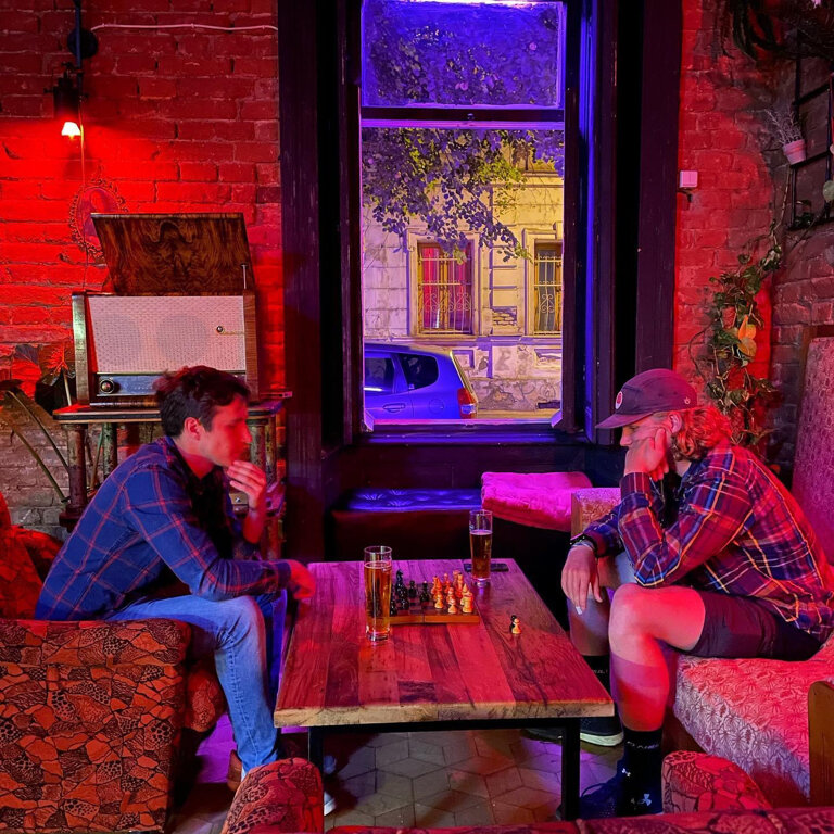 A great bar with pleasant staff and atmosphere, the prices for classic cocktails are about the same as everywhere else, only there is no food. There is also a cool slot machine where you can order a song for 1 lari.