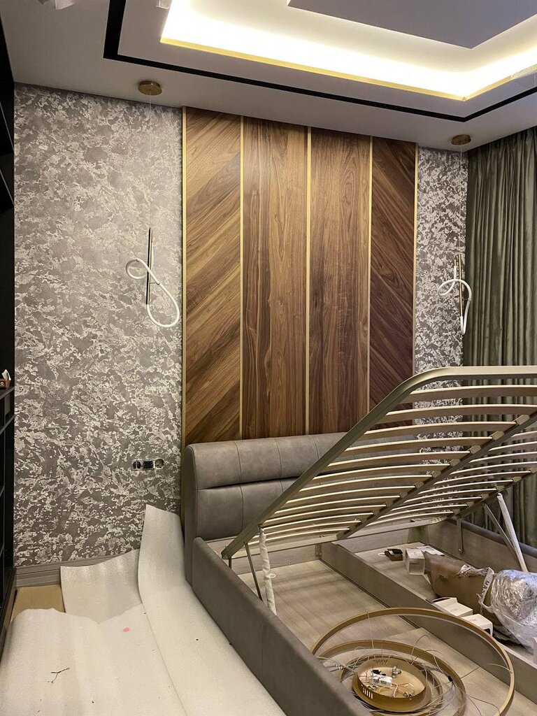 Заказывали в Соффти стеновые панели рифлёные с латунной вставкой, кровать в потолок, тумбочки и прочую мебель. Все установили, все отлично. Единственное, панели стеновые сразу не вставали. Мягкую сразу переделали на месте и поставили, а рифлёные отвезли опять на фабрику, на следующий день уже привезли и поставили. Смотрится огонь, мне нравится