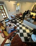 Нравится это тихое место. Очень вкусный кофе тут, беру флет уайт. Вкусный миндальный круассан. Очень крутая лестница на верх, но сидеть там нравится. Открывается вид на красную площадь. А интерьер в стиле джапанди, ну что-то напоминает. Очень классная веранда. Туалет на улице в отдельном здании.