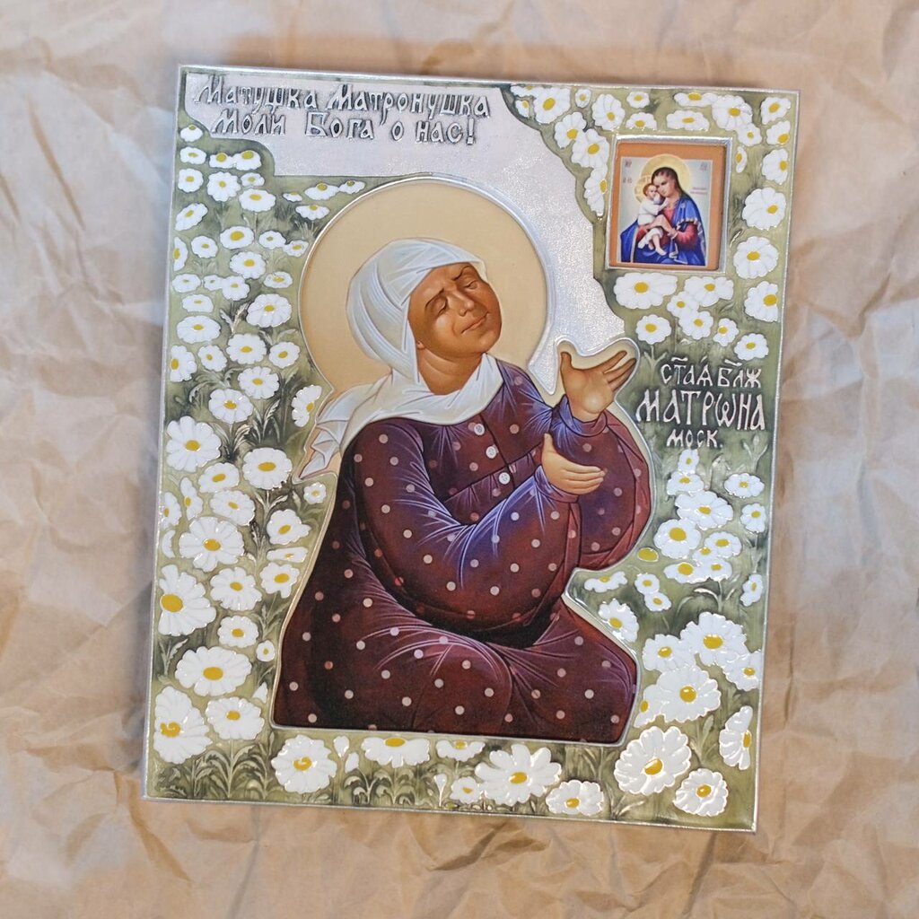 София Икона Святая Матрона в окладе с серебрением и эмалью