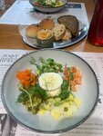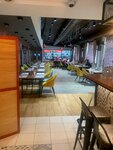 Хорошее кафе для обедов, поужинать и провести дневное мероприятие (организовать стол для детей). Бизнес меню доступное, порции хорошие. Обедали по бизнес-ланч: очень вкусный Оливье, с интересной подачей, вкусная солянка. Почему 4? Из-за Оччень медленной подачей кофе. Сначала пришли только за ним, в зале было занято 3 столика. Так вот 2 кофе делали 15 минут. При этом мы ничего больше не заказывали. Дают время подумать и заказать еду? Но после самолёта хотелось именно кофе. Так же с бизнес ланчем: хлебная корзинка идёт отдельно, но погода ты впервые раз и не знаешь, тебе приносят суп, а хлеба нет. Мне кажется, в таком случае официант или должен с заказом супа спрашивать про хлеб, или он должен идти дополнением. Но никак не отдельным блюдом🤔. При этом хлебную тарелку приносят с вкусным паштетом. Поэтому: качество еды: 5, а вот с обслуживанием: 4. И эта 4 пересилила именно из-за усталости после перелёта, и желанием взбодриться.