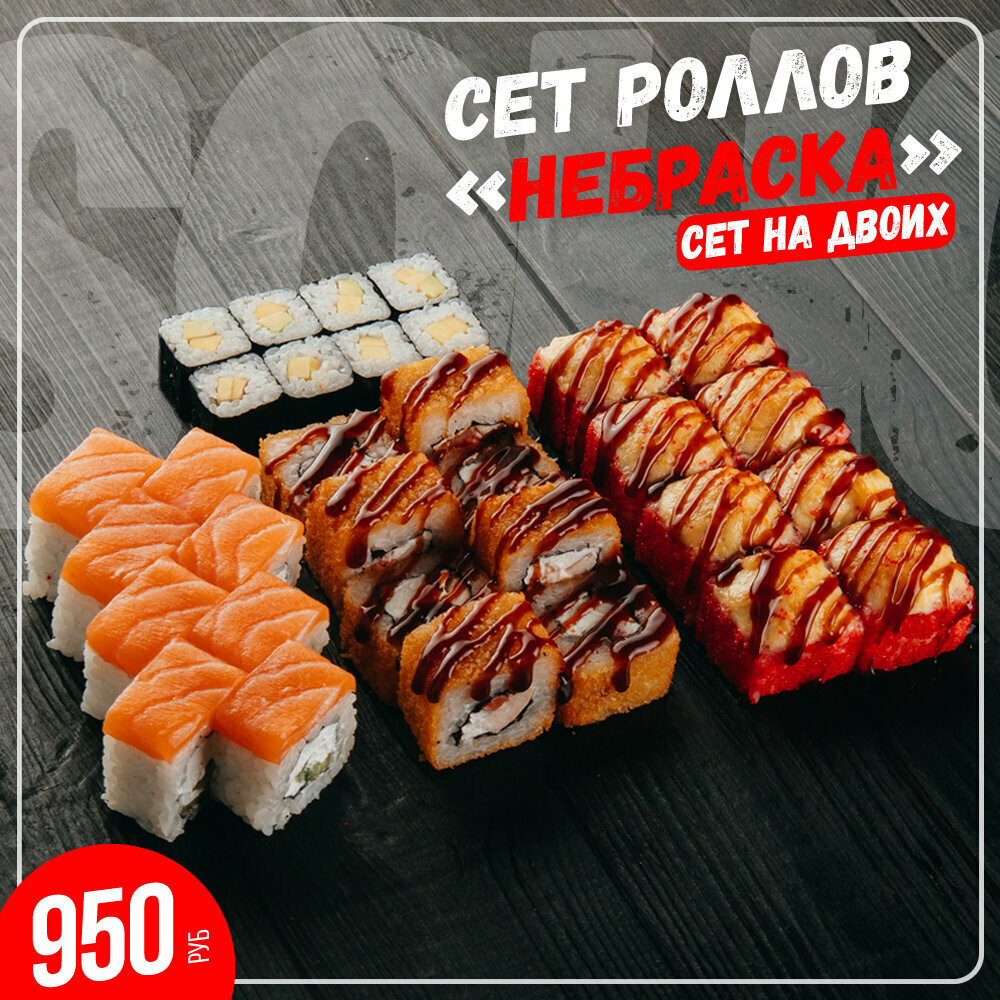 56 КУСОЧКОВ! В этот сет входят: Филадельфия лайт Отори ролл Чикен Барбекю ролл Теплый овощной ролл Калифорния (краб) Классический ролл с огурцом Классический ролл с беконом Сет рассчитан на 3-4 персоны. В состав сета БЕСПЛАТНО вхо...