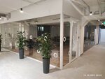 Очень крутое , современное пространство . Много естественного света , за счёт светопрозрачных стеклянных перегородок . Комфортные , с удобной мебелью , переговорные помещения . Отдельно отмечу , входные , противопожарные светопрозрачные входные группы , на втором и третьем этаже. Все конструкции , и фурнитура на всех дверях в белом цвете . Очень крутое решение !