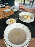 Отличное кафе с видом на мост. Меню на разный вкус. Суп пюре картофельный очень понравился. Кофе раф классический изумительный.