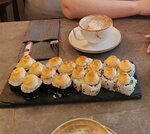 В целом неплохо,есть,как плюсы так и минусы.Пицца вкусная,роллы брали разные,по вкусу тоже нет замечаний к двум видам,о третьем ниже.До этого пару раз заказывали на дом,посетили лично в первый раз.Девушка бармен,она же официант,она же кассир очень обходительна и вежлива,подача быстрая. Минусы тоже для себя нашли.Ролл запеченая филадельфия очень отличался по внешнему виду от буклета,приложения и меню,соус унаги сверху отсутствовал(фото прилагаю),вид конечно очень непрезентабелен,присутствует темная часть от спины на кусочках,квадраты рыбы только по верху,сухой,при запекании высох ещё больше.На сайте заявлен подарок при покупке на сумму заказа 1500 или 2000(в зависисимости от суммы заказа),как выяснилось это только на доставку,о чем на сайте нигде не написано,,только через приложение,,или,что то подобное,нет такой информации нет.В других местах подобные акции всегда без проблем,ведь,я,могла посмотреть меню до посещения кафе через приложение,мелочь,но это необходимо прописывать,тогда эту информацию можно учесть заранее сделать заказ на самовывоз получив свой бонус,тем более написано четко при ПОКУПКЕ.Конечно мы купили этот бонус в виде Моти отдельно,кстати могу добавить,что дессерт тоже вкусный.Какао тоже вкусное с пенкой,всё,как положено,но кофе надо доработать начинки вроде бы разные по меню,и даже отсутствовал Раф с кунжутом,выбрана замена,но по факту кофе и сироп в единой жидкости,т.е по факту нет содержимого в виде халвы,орехов,честно такой кофе пила первый раз. С Уважением Жена Шеф.повара,в прошлом сушиста,другого ресторана нашего города.