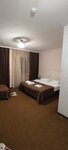 Удобное расположение. Проживали с 24 на 25 сентября 2025 года. На пятом этаже. На этаже есть кулер и гладильная доска. Номер двухкомнатный с гостиной и спальней. На полу ковролин. Вполне в приличном состоянии. Чисто. Белье белоснежное. Просторный санузел. Есть мыльно-рыльные принадлежности, тапочки одноразовые. В санузле имеются также диспенсеры с жидким мылом и гелем. Бумага туалетная отличного качества. Плотные шторы, в номере тихо. Телевизор расположен в зоне гостиной. Из спальни смотреть его сможет только один гость, не вставая с кровати через дверной проем (возможно для кого-то это важно). В наличии кондиционер, маленький холодильник диван, большой шкаф с вешалками, туалетный и письменный стол, столик с чайником, чашками, стаканами, а также пакетики чая и сахар. Администратор на стойке приветливая. Внимательный сотрутник охраны, который принимал живое участие по вопросу парковки, а также сопровождению по зданию. Завтрак достойный. Для утреннего приёма пищи вполне хорошо. Есть молочная каша, нарезки, кофемашина, напитки, картофель, курица (ее очень много), гречка, яйца, омлет, яичница, печенье, рулет, сухие завтраки (шарики, детские какие-то приблуды). Единственное сотрудница кухни не очень опрятно себя вела и весьма небрежна. Добавляя еду крышки контейнеров открывала лопатками для еды, крышки внутренней стороной клала на стол, яичница свесилась, крышкой прижала, не попыталась поправить блюдо, при манипуляциях с добавлением еды, оттеснила молча гостя. Вызвала у нее недоумение. Это единственный минус на который обратили внимание. В зоне кафе есть микроволновки. С парковклй сложно, но по улице место поискать можно. Но мы приехали вечером, возможно днем такой проблемы особо нет. До центральной улицы пешком спокойным шагом 20 минут. Рядом есть магазины. Спасибо большое за приём.