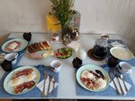 В гостевом доме "Солнечный" имеются две кухни, полностью оборудованных посудой, плитами, холодильниками, микроволновыми печами, электрочайниками, кофеварками, вытяжками. Гости могут готовить самостоятельно, либо заказать завтрак.
