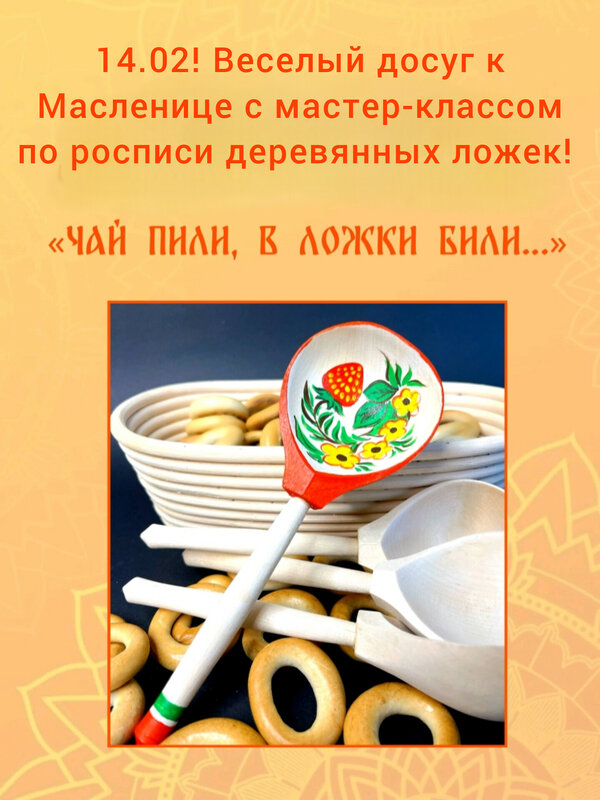 Мастер-класс по росписи деревянных ложек 14 февраля 14.02! Веселый досуг к Масленице с мастер-классом по росписи деревянных ложек! "Чай пи...