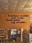 Просторное и уютное кафе. Кофе вкусный. Туалет чистый. Персонал отзывчивый, но очень грустный) Десерты не домашние, обычные, выставлены в холодильной витрине. Перед кофейней есть удобная стоянка. Посетителей не много и если нужно с кем то встретиться и поговорить, Солнышко- отличное место!