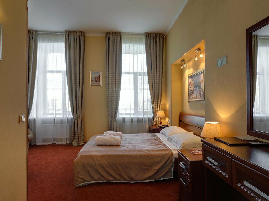 понравился отель. расположен рядом с исакиевским собором, очень хороший сервис, приветливый персонал, готовый помочь по любому вопросу. в номере чисто, белье кипельно белое, чайные и иные принадлежности, есть доп.место при необходимости -кресло. цены демократичные!