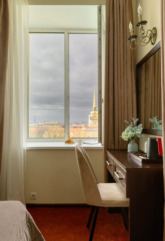 Комфортный номер со всеми удобствами из окон открывается вид на Зимний Дворец и город