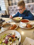 Очень понравилось! Уютно, вкусно. Находится на центральной улице Калуги. Брали в 1 день салат оливье с сёмгой, фирменный суп солянка, цветную капусту с миндалем, медовик с черносливом, сбитень. Всё понравилось! Салат с сёмгой был украшен красной икрой. Солянка такая, как должна быть, наваристая, с мясными колбасками. На 2 день брали оливье с говядиной, селедку под шубой, котлеты из щуки, котлету по-киевски, морс, милкшейк кофейный. Всё было очень достойно и вкусно. Котлеты из щуки были тоже украшены красной икрой, очень вкусные! Большое спасибо администратору зала за помощь в оплате парковки! Из минусов: в воскресный день - долгое ожидание, всвязи с большим кол-вом народа. Милкшейк был посыпан натуральными зернами кофе, из-за чего трудно было есть взбитые сливки. Непонятно, зачем это сделали. Самый большой минус - платная парковка! Но цена небольшая - 35 руб./ ч. У нас были трудности с оплатой через приложение, оплачивали через паркомат на углу улицы.