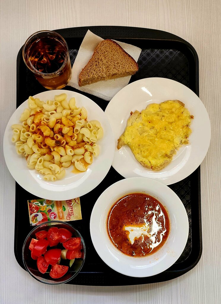 Блюда приготовлены хорошо, изжоги ещё ни разу не было после приёма пищи в данной столовой. Есть выбор первых, вторых блюд, салатов и соков. Порции средние но вполне сытные. Каждый день есть на выбор комплексные обеды по цене шаурмы. На столах присутствуют специи на выбор. В продаже имеются дополнительно заморозка и прохладительные напитки. Персонал доброжелательный, в помещении довольно уютно и чисто.