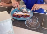 Бесподобная рыба лиса (краешки ската). Быстрое обслуживание, Оксана замечательная, по вину всегда , когда приходим, угадывает настроение. Сегодня был Захарьин. Вид на море шикарный, посадка полная, как правило, но при этом не было ощущения шума, что кто то мешает. Спасибо огромное за вкусную еду, позитивное настроение.