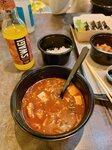 Корейский стрит фуд, причём именно корейский, не паназия, поэтому и привлёк внимание. Плюсы: чисто, персонал вежливый, приятный интерьер. Выбор позиций достаточно большой, меню сбалансировано, для первого или стартового знакомства с корейской кухней очень неплохо. Понравилось что рамен они не выдают за свой, если это булдак или шин, то так и будет указано. Но именно поэтому их мы и не брали, можно и дома сварить, с яйцом, мясом и так далее. Думаю здесь получили бы похожий вариант, и это здорово, особенно для тех кто просто хочет заказать рамен на обед в доставке например. Зато пробовали кимчитиге, том ям, кимпабы, и это было очень даже хорошо. Кимпабы не разваливались, начинки тоже было прилично, вкус интенсивный. Порция супа кимчитиге была очень большой, к нему же подавался рис, так что можно было бы наесться только им, к тому же остринка была прям такой, какую хотелось, чтобы это было прямо остро, не пикантно. Но в тоже самое время, это можно было съесть, и получить удовольствие от вкуса. Тут попадание по остроте в десятку, но это субъективно, для более искушённых может показаться неострым и наоборот, с непривычки это было бы достаточно сильно остро. Но я такое встречаю редко, обычно в угоду среднему посетителю остроту занижают. Том Ям был на четвёрку, я пробовал вкуснее, креветки уже дважды перешли, то есть их скорее всего уже добавляли вареными и они сварились ещё раз) но почищены хорошо. В общем второй раз я бы эту позицию не брал. Надо понимать что это конечно не ресторан высокой кухни, а именно стритфуд, во многом работающий на доставку еды по району. Ценник показался приемлемым на текущий момент времени. Выбор напитков мог бы быть и больше. В целом оставил 100% положительные эмоции, учитывая то, что специальных корейских стритфутов на районе почти нет, этот стоит внимания. Бизнесу успехов, будем пробовать доставку и зайдём ещё.