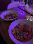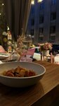 Очень понравился этот ресторан, приветливые официанты - подсказывают интересные позиции по меню👍🏼 Вечером в выходные играет живая музыка (была девушка с гитарой, видно что ещё мало опыта и она очень стесняется - вот здесь есть что улучшить, но это мелочь) Брали: - пицца 4 сыра 🍕 (подается с грушей) - самая лучшая пицца из всего, что я пробовала за последнее время - вкусный салат с креветками🥗 - паста с морепродуктами 🍝 : гребешок, мидии, креветки, осьминоги в достаточном количестве - паста с говяжим языком 🍝 : слегка островатый соус Очень рекомендую посетить данный ресторан