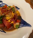 Меньше всего хочется чувствовать себя потерянным в новом заведении, благодаря отсутствию хостес мы испытали на себе это с полна дважды. Ни меня, ни мою гостью не встретили и не проводили. Доедая первый курс, нам позвонили и спросили придем мы или нет?😂 Но нам достался лучший официант- Дмитрий, который сгладил все углы! Очень честно проконсультровал по меню и подобрал лучшее из лучшего. Севиче с тунцом и креветкой ; тар тар - ничего небычного, но и неплохо! Птитим с кальмаром- браво!! Очень вкусно! Коктельная карта заслужтвает особго внимания, все коктейли были 10/10! Ну и гардербшик дядя Серёжа- сердце заведения❤️ Врят ли я целенаправленно вернусь туда за кухней или атмосферой, но побывать там однозначно стоит.