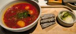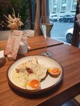 Случайно нашла данное заведение в рекомендациях, не было особенных ожиданий, хотелось чего-то новенького в очередной свой приезд в любимый город. В субботу зашла пообедать на удачу без брони. Ресторан был полон симпатичной наряженной молодёжи, празднующей и отдыхающей, но места с ограничением по времени в наличии были. На обед пробовала борщ с копченой уткой и десерт Ловец снов. Люблю насыщенные вкусы, а здесь они были. Удивила подача, впервые вижу "наполеон" из черного хлеба с салом. Вообще я собрала комбо в этом блюде: при прочих равных я не беру утку из-за её жирности, не везде её подают хорошо, чернослив вообще не ем, сало не понимаю, но все эти ингредиенты в данном блюде отлично друг друга дополняли, так что я с удовольствием всё съела и осталась более чем довольна. Десерт заинтриговал описанием: грушевое компоте, жареный шоколад - и он тоже был хорош, но помнить я буду именно борщ ....и обворожительных галантных официантов)) Утром в воскресенье вернулась на завтрак, меня тепло встретили, и даже узнали (возможно я сильно выбивалась из привычной массы посетителей? =)) на завтрак был тост с авокадо, красной рыбой, яйцом пашот и голландским соусом - была вкусно и сытно, а ещё замечательно украшено (мои первые цветы в январе =). В общем, получила удовольствие не только как человек, любящий поесть, но и как женщина, окутанная вниманием))))