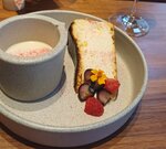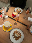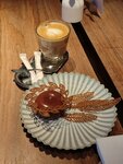 Забронировала себе столик, чтобы красиво начать день рождения🤌 Заведение понравилось! Заказывала завтрак крепс из цукини с мортаделлой, к нему подали бокал ледяного игристого. Что еще нужно для прекрасного началад дня?)) Завтрак был сытный, порция для ресторана - супер. Я сидела и кайфовала от каждого кусочка съеденного! Как имениннице мне также сделали подарок - фирменный десерт баскский чизкейк с ряженкой. Воткнули свечку, все как полагается))) Вкусно, нежно, не приторно сладко, с ебольшим количеством свежих ягод. Отдельное спасибо официанту Егору, очень приветливо встретил, поздравил🥹 Приду к вам еще)