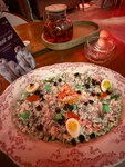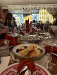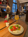Кухня неплохая, но без ярких впечатлений, просто ровный вкус, например паста с морепродуктами - да, свежие, да, паста альденте, но без ощущения, что есть какая-то изюминка - просто поела и забыла. Интересен фирменный десерт Ловец снов - внутренняя начинка из груши хорошо оттеняет насыщенный вкус шоколада с карамелью в муссе. А вот новогодний десерт - матрешка не впечатлил, пресновато-ровно опять же, как паста. Рислинг безалкогольный больше похож на кислый лимонад, ощущение было что его держали открытым и недостаточно охладили. Салаты вкусные, тут вопросов нет) ну и мне не предложили подставку для сумочки, пришлось самой ставить - для меня это очень странно для ресторана такого уровня, хотя сам сервис - официанты на уровне…вечером здорово играет на гитаре и поет артист, потом диджей - музыка приятная, ненавязчивая и не мешает разговорам))