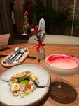 Бронировала ресторан заранее, читала замечательные отзывы, к сожалению явно переоцененное заведение… как говорится театр начинается с вешалки, официант лениво встретил меня, смотрел, как я корячусь с пальто и вешалками и даже не предложил мне помощь(.. дальше, когда надо было меня проводить в зал и посадить на заранее забронированное место, сделав несколько шагов ,он остановился, увидев своего знакомого и начал с ним разговаривать, а я одиноко стояла в центре зала и ждала, пока меня, наконец, проводит на моё место, пока я не обратила его внимание на себя, он даже не вспомнил обо мне! По еде, прекрасной салат оливье с креветками и икрой, вопросов нет. Паста с осьминогом и остальными морепродуктами явно не стоит денег ,которые за нее были заплачены, Коктейль был вкусный. Интерьер заведение современный, с открытой кухней. Очень красивые дизайнерские решения по случаю Рождества и Нового года.