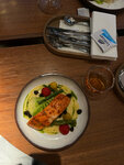 Решили провести вечер в этом ресторане и ни капли не пожалели! С самого начала порадовало обслуживание — персонал очень внимательный, приветливый и профессиональный, всегда готов помочь с выбором. Брали греческий салат - очень достойные овощи, севиче с тунцом, шницель куриный и стейк из лосося. Все очень вкусно 🤤