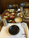 Ресторан корейского барбекю и прочей кухни. В час пик будет дымно. В первое посещение непонятны алгоритмы и нужно дибо догадаться, либо пытать официанта, что кроме мяса есть еще и всякие овощи-соусы, которые нужно добывать самостоятельно у столика с закусками. Вместо тарелок дали блюдца, видимо, чтобы овощей много не набирали. Впечатления странные, одежда и волосы пропахли дымом. Но в целом забавно и аутентично. Хорошо приходить компанией вместе жарить мясо и пропитываться дымом. Очень вкусный чай.