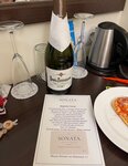 Спасибо отелю Соната, что приютили! Приехали с сыном в Питер вечером, собирались заселяться в съёмную квартиру, но она, мягко говоря, не совпала с нашими ожиданиями. Позвонила в Сонату, очень приятная девушка-администратор тут же подобрала нам номер. Через 20 минут мы уже заселялись. Гостиница расположена на Невском, в 3 минутах пешком от Эрмитажа. При этом шум улицы нам совершенно не мешал (хорошие окна). За углом метро. Три минуты по Невскому - причал, с которого можно поехать на водную экскурсию. Отель расположен на 3 и 4 этажах здания, лифта нет (это, пожалуй, единственный маленький минус, тащить чемодан). В номере всё замечательно: у нас был с двуспальной кроватью и диваном. Столик с чайным набором (чайник, чашки, пакетики с чаем), большая ванна с джакузи, кондиционер, удобные матрас и подушки. Дают ключ от номера и кнопки от входной двери и двери на этаж (если возвращаетесь поздно, как, например, мы с разведения мостов, то никого не беспокоите). На этаже есть кулер с водой. Есть возможность завтраков, не могу оценить, мы не брали. В округе большое количество разных заведений, где можно поесть.