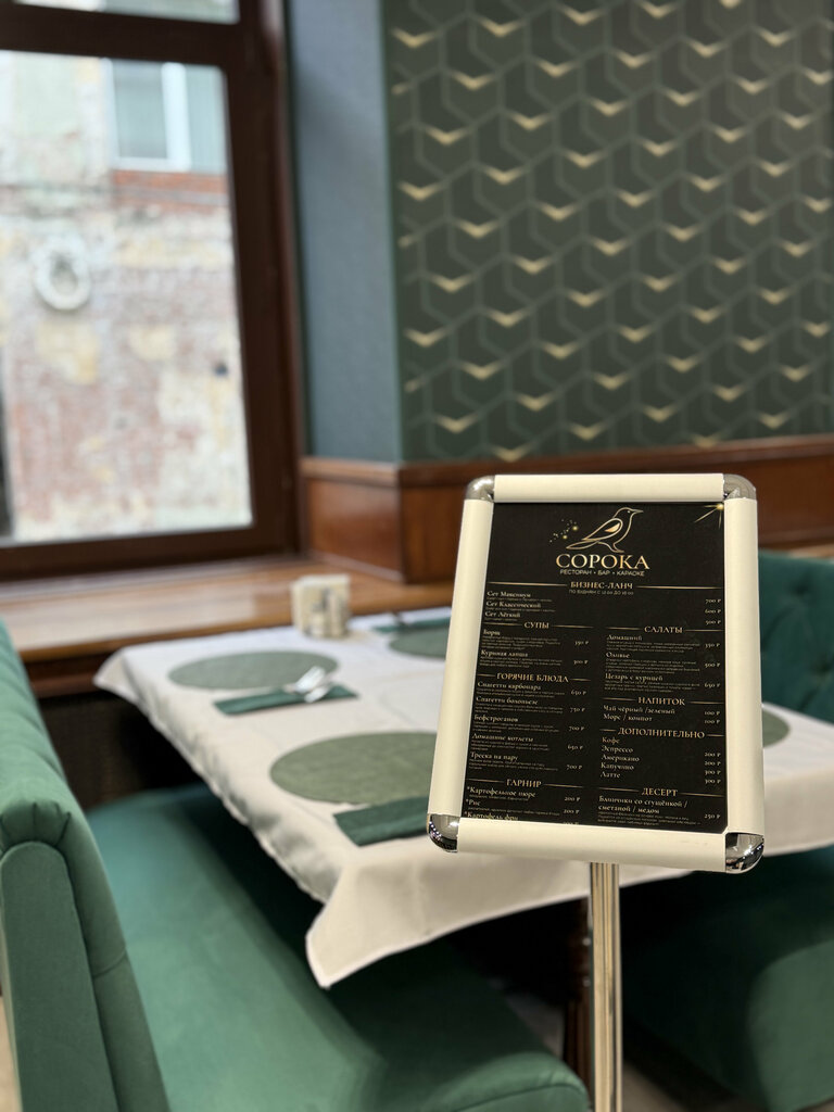 В августе 2024 приехала с Питера и гуляла по центру Москвы. В кафе заглянула пообедать. Комплексный обед с 1вым,2рым, салатиком и что-то из напитков обошёлся в 350руб. Еда вкусная, качественная и быстрое обслуживание. Зал просторный и много столов. В соседних тесных кафешках один кофе с бутером выходил под тысячу. Интерьер устарел, но по-чесноку было все-равно. От Сороки осталось приятное воспоминание- накормили вдоволь и не обобрали😊. У них по- мимо комплексного стандарта есть и вкусняшки, и кофе, и кавказские штуки. Спасибо,что в центре есть такое место, где можно подкрепиться небогатым туристам!