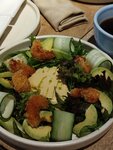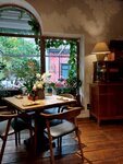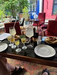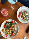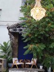Очень колоритные место! Основное меню небольшое, но интересное. Есть еще меню с роллами и с пиццей. Неплохая винная карта. Заказывала себе салат с креветками и азиатским соусом: сытно и интересно. Муж брал пасту с кабачками и креветками, тоже вкусно. Еще попробовали роллы с танцам: чёрный дракон вроде. Нежно! Мы были часов в 18, места были. Если позже, то лучше сделать бронь. Особенно интересны места на улице, но лучше вечерами... А вообще внутри в заведении тоже жарко.