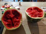 I use this store all the time. everything would be fine, but today's case is just disgusting. I bought a huge watermelon. I brought it home, cut it up, and there's porridge inside. I think we should take it back and demand a refund. I look through the receipt and realize that no one was going to punch the watermelon, they weighed it and that's it. they knew perfectly well that it was corrupted. They just used me to take out the trash... I'm thinking, maybe I should take it back and put it in front of the door.