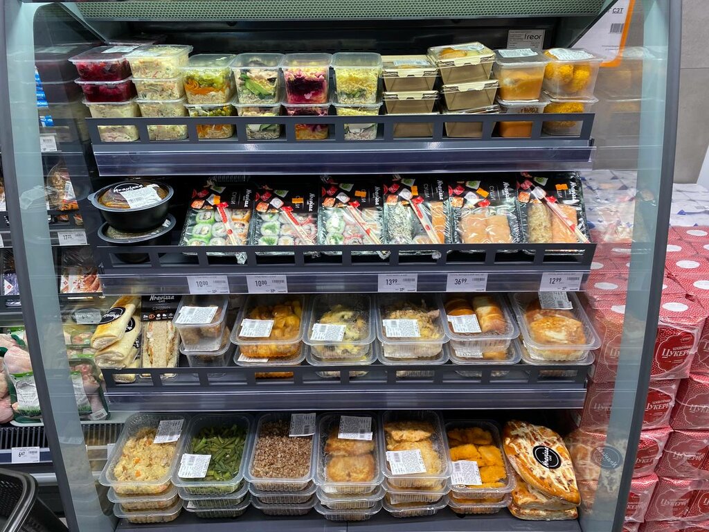 A small store with a small assortment. There is a basic set of products. Juices, coffee, tea, sugar, confectionery, meat, sausages, bread. I liked that there is a small department with ready meals. For large purchases, it is better to go to large stores.