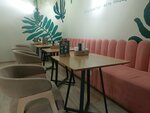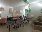 Уютное небольшое кафе. На летней веранде красивое оформление цветами. Предлагают вечером плед. Обслуживание быстрое, официанты молодые, быстро убирают со столов, дезинфицируют. Так же приятно и внутри! С удовольствием оставляем чаевые, есть за что! Придём ещё!