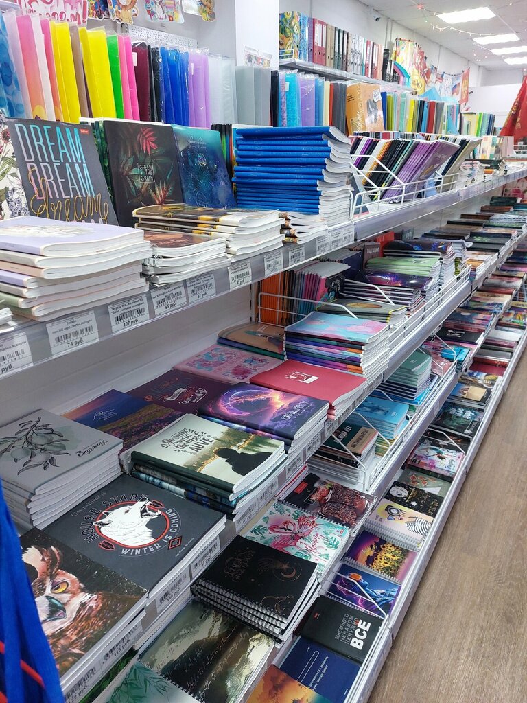 Очень понравился магазин, много чего есть, тетради, маркеры, ручки, карандаши, фломастеры, выделители, ножницы, блокноты и тому подобное, так же есть для праздников товары, интересные книги, бейджики. В общем, буду там закупаться 👍