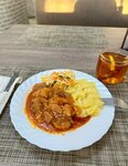 Гоню машину с Востока на Запад, остановился покушать. Заказал борщ, гречка с гуляшом из свинины и салат из свежих овощей, чай и блины со сгущенкой - всё за 511 рублей! Всё приготовлено вкусно, по-домашнему. Мясо нежное, мягкое. Блины тоже понравились, салат обычный, чай в пакетиках. Персонал добрый и приветливый. За 10 минут все блюда на столе.